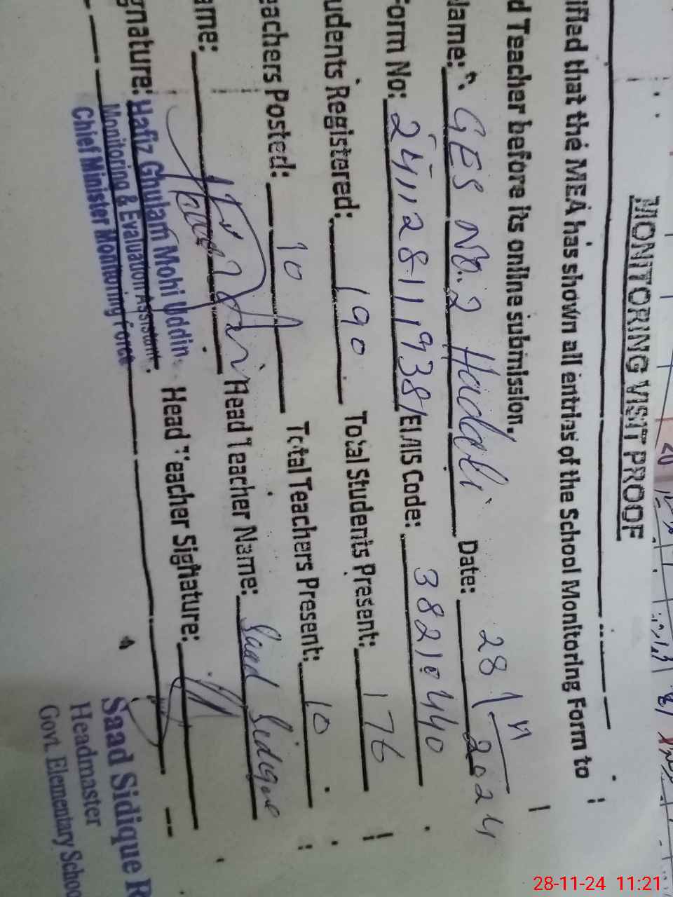 | Name: SA**** SI**** Designation: (School Headmaster's/Headmistress's) SSE. Eng Phone/Cell Number: 03**** |