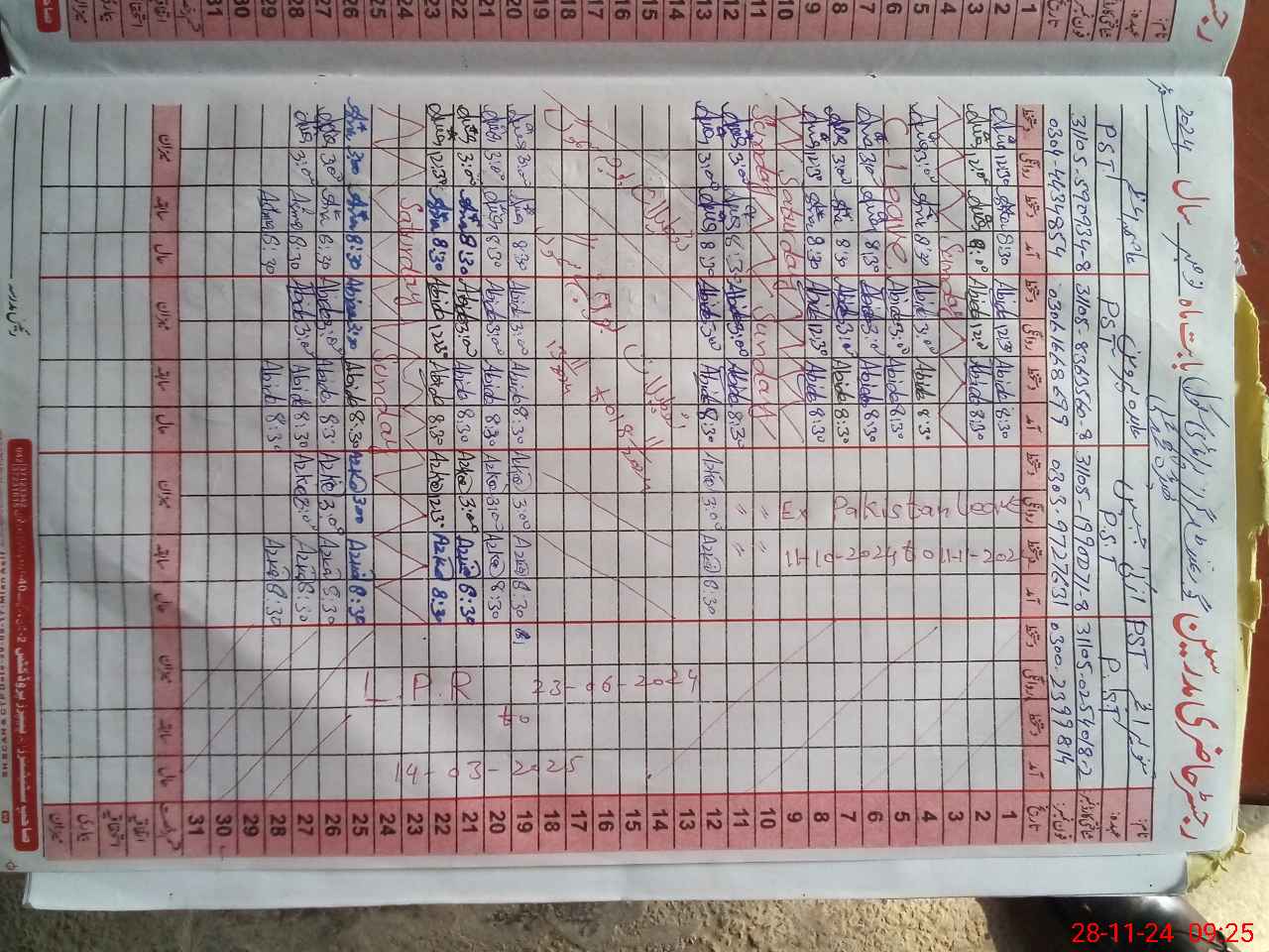 | CNIC | Full Name | Designation | R/C | Absence During Last Calender Month |