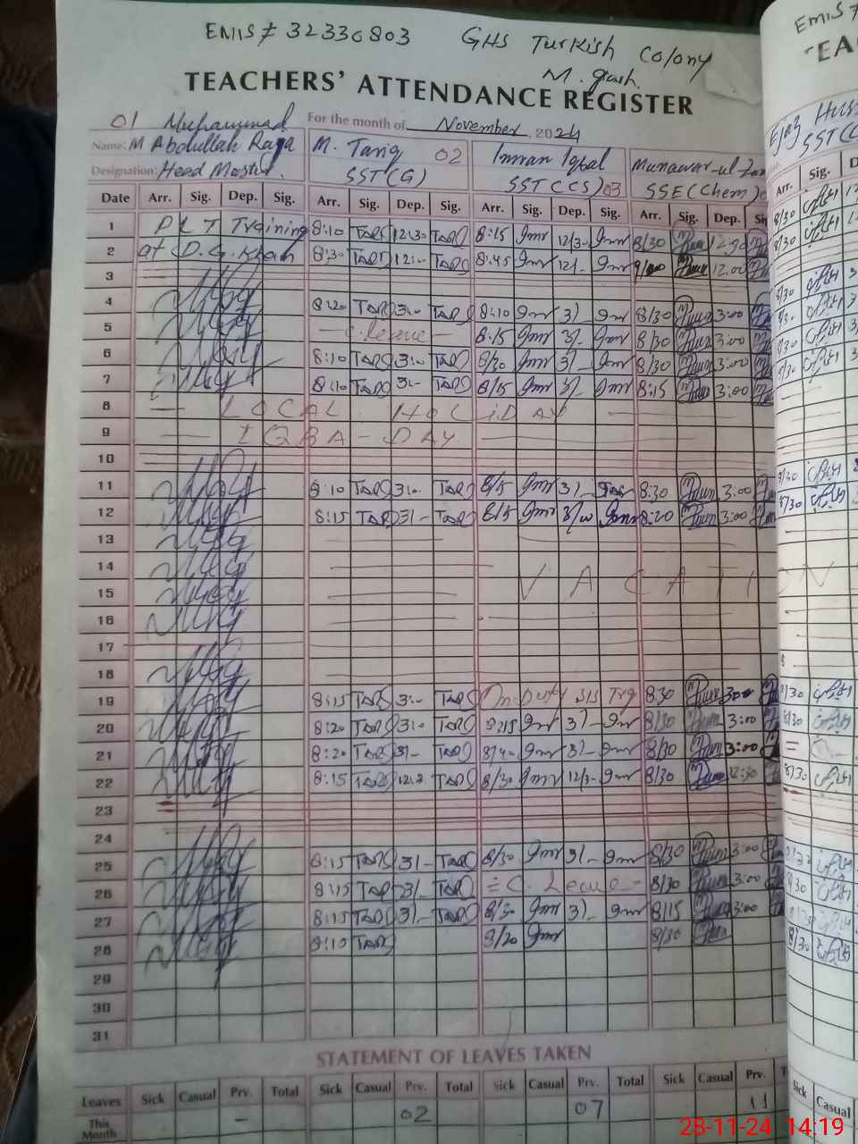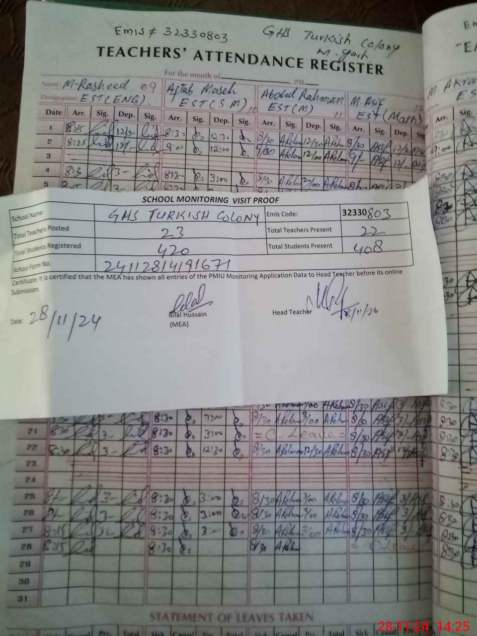 | EMIS Code: 32330803 | Name of School: GHS TURKISH COLONY MUZAFFARGARH | |||