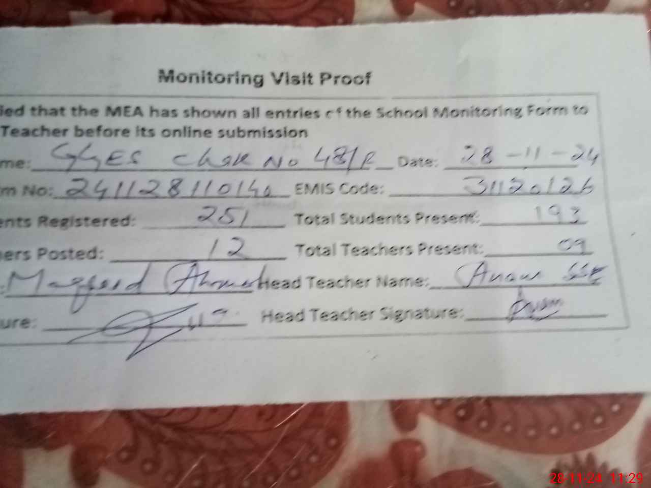 | EMIS Code: 31120126 | Name of School: GGES CHAK NO. 48/F | |||