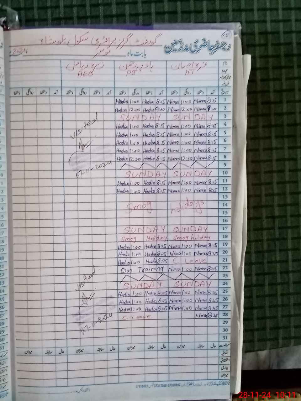 | CNIC | Full Name | Designation | R/C | Absence During Last Calender Month |