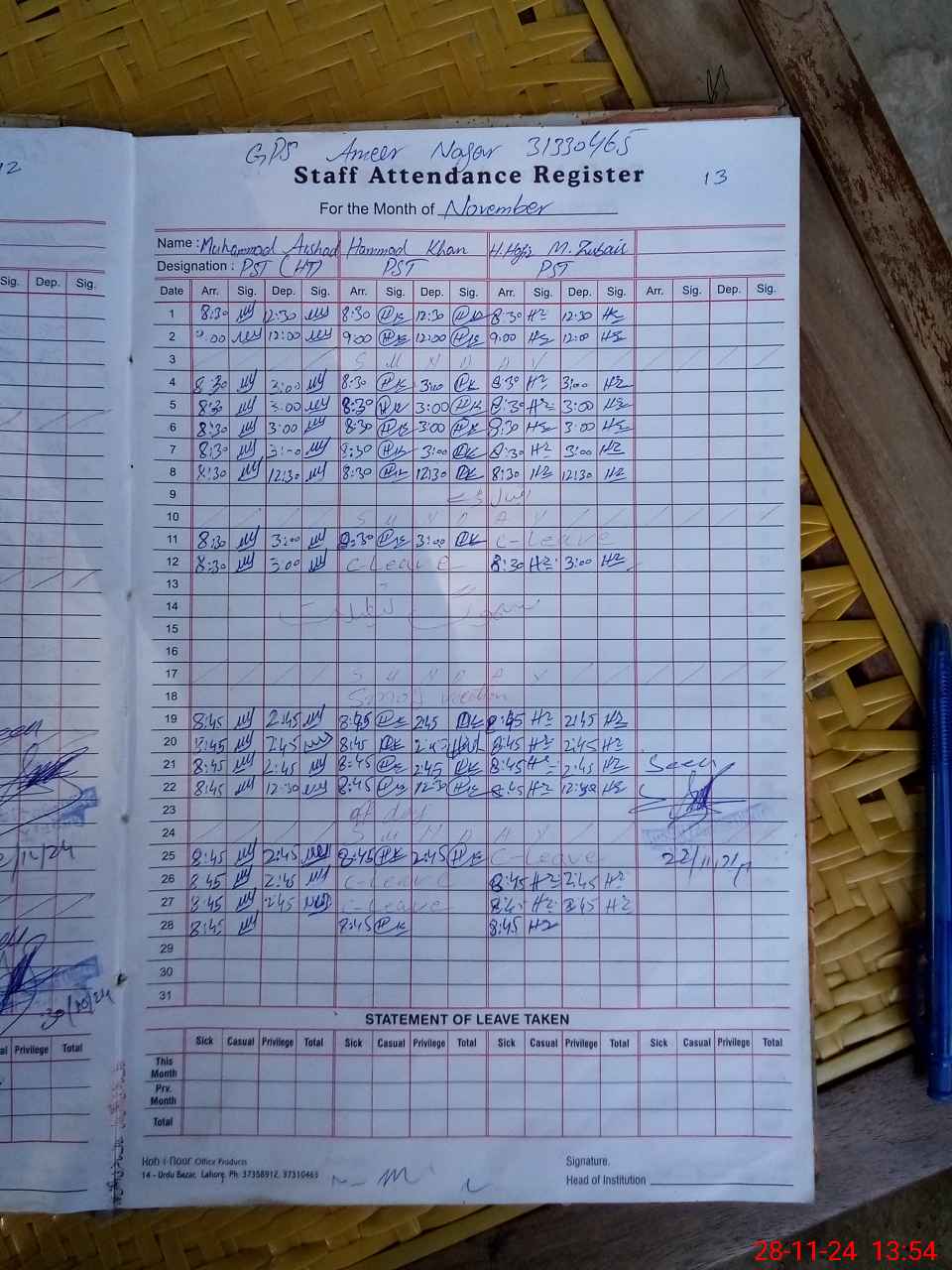 | Name: Mu**** Ar**** Designation: (School Headmaster's/Headmistress's) PST/PTC/JV Phone/Cell Number: 03**** |