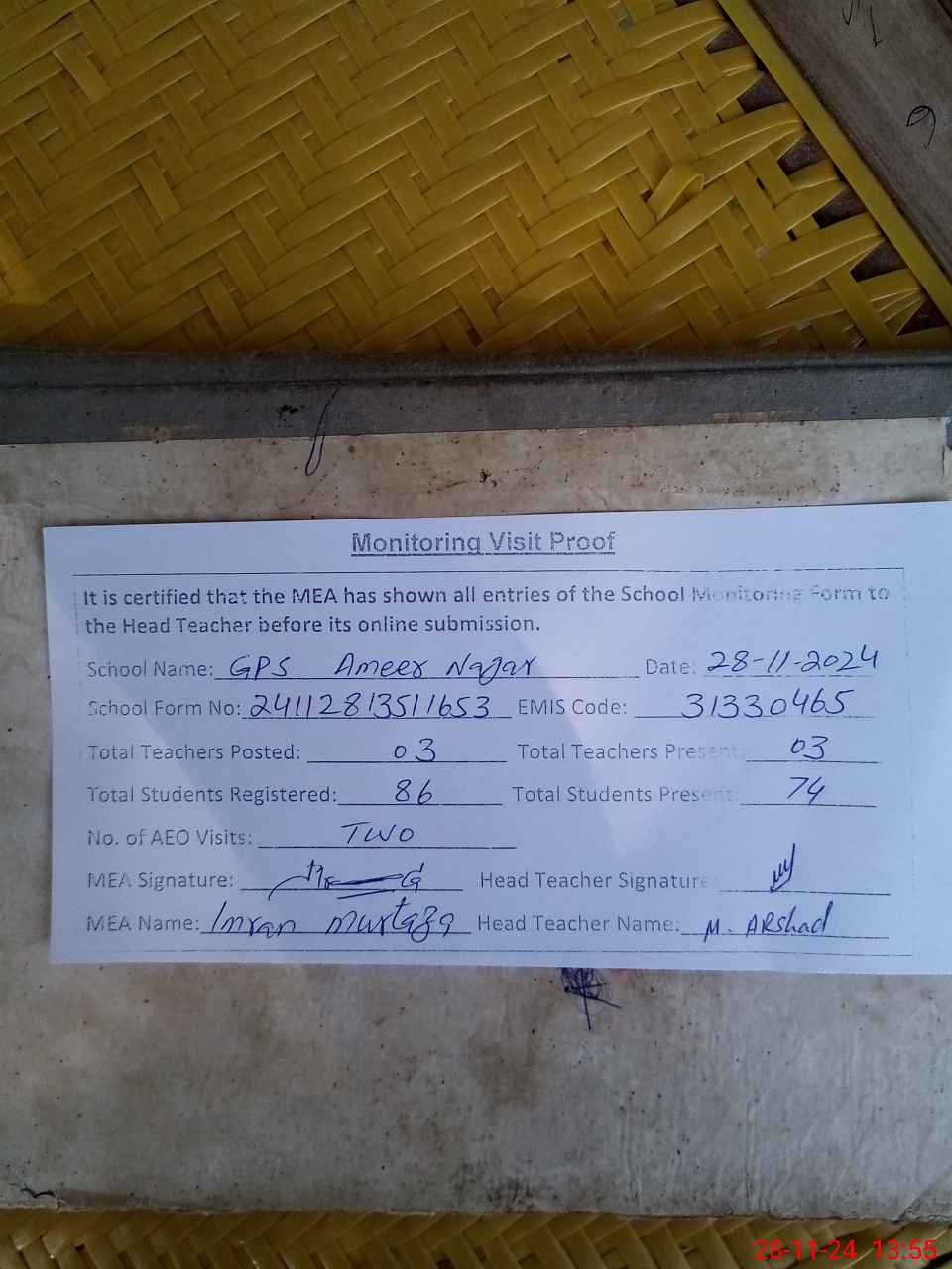 | EMIS Code: 31330465 | Name of School: GPS AMIR NAGAR | |||