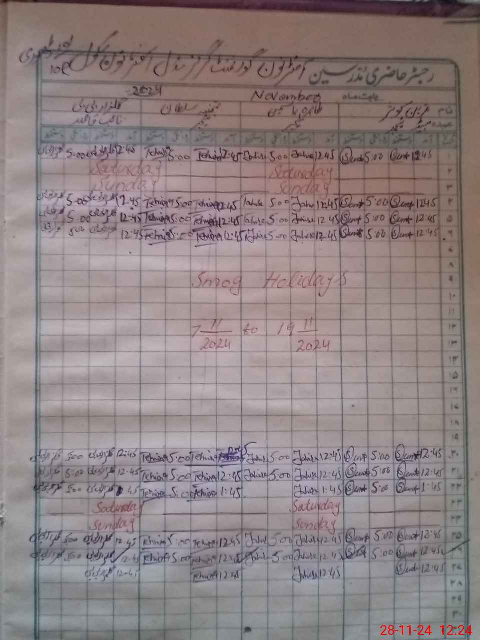 | Monitoring Date: 28-11-2024 | Start Time: 28-11-2024 11:45 AM | End Time: 28-11-2024 12:41 PM | Name of MEA: Is**** Me**** | |