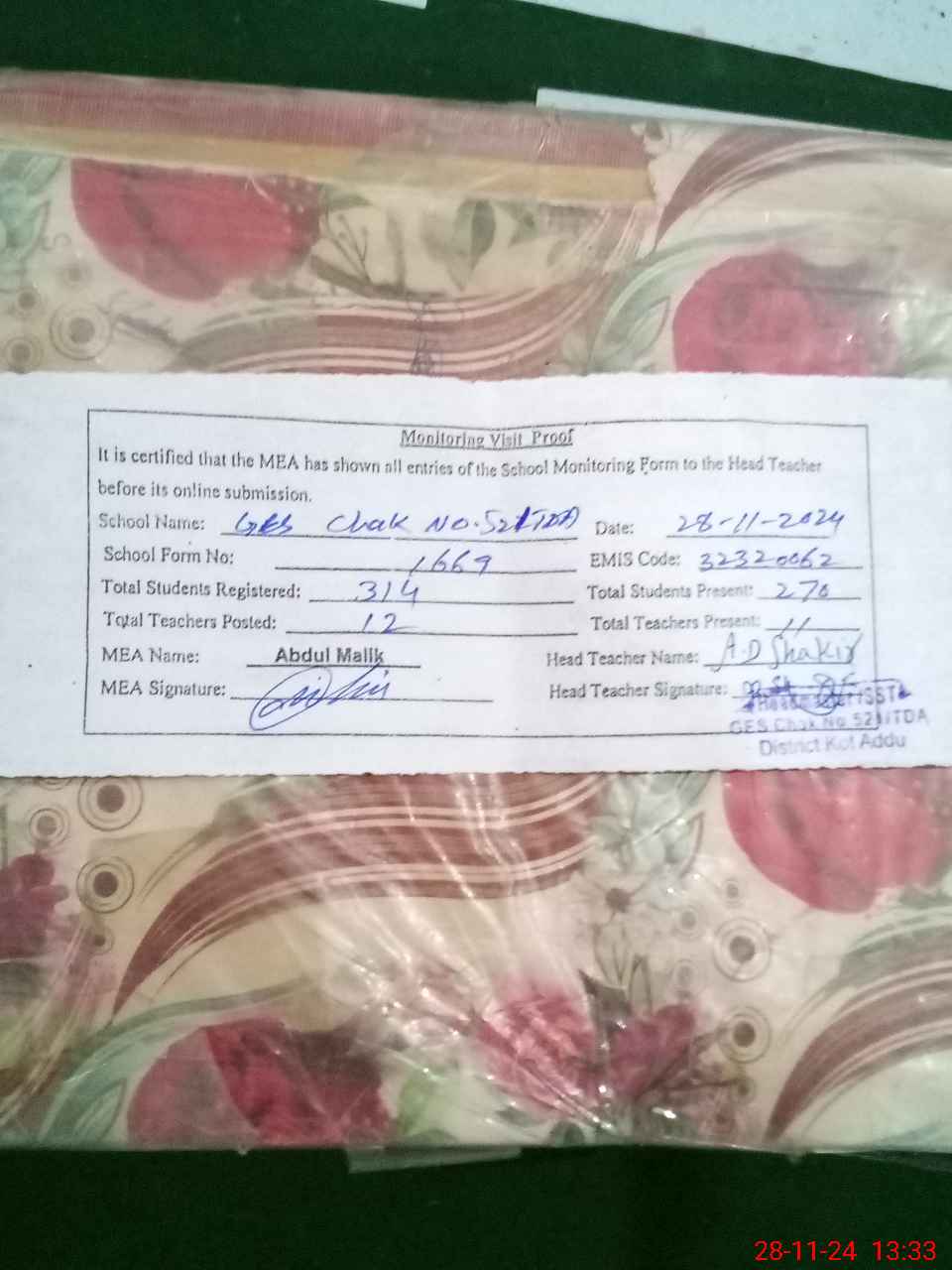 | EMIS Code: 32320062 | Name of School: GES CHAK NO.521 TDA | |||