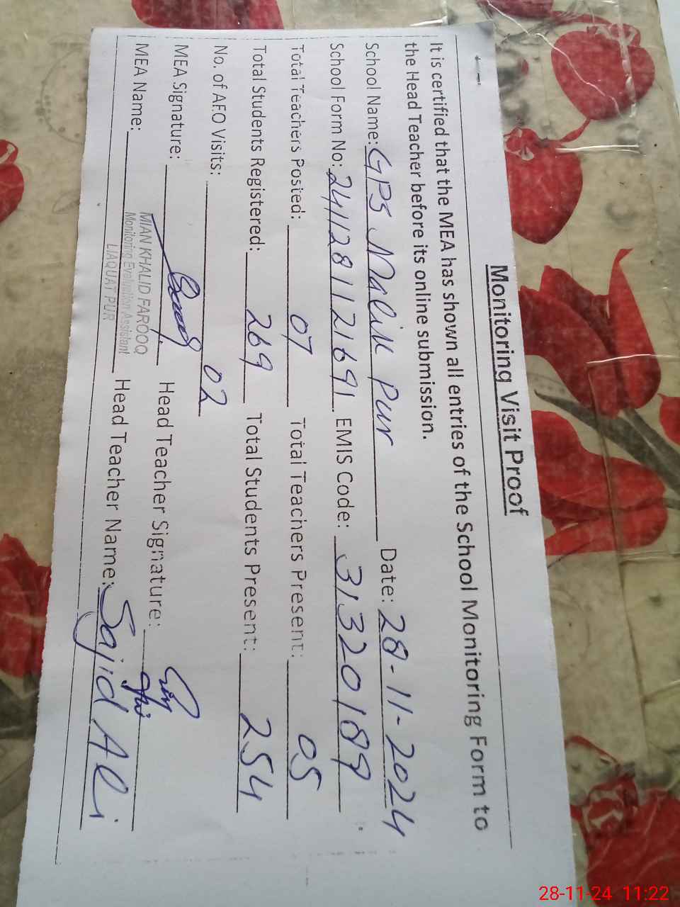 | EMIS Code: 31320189 | Name of School: GPS MALIK PUR | |||