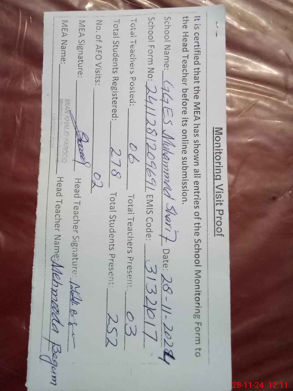 | EMIS Code: 31321017 | Name of School: GGES MUHAMMAD SHARIF | |||