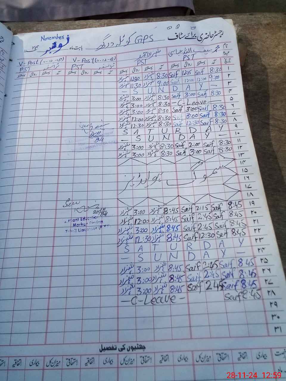 | CNIC | Full Name | Designation | R/C | Absence During Last Calender Month |