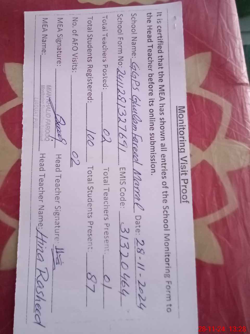| EMIS Code: 31320464 | Name of School: GGPS GHULAM FAREED MARAL | |||
