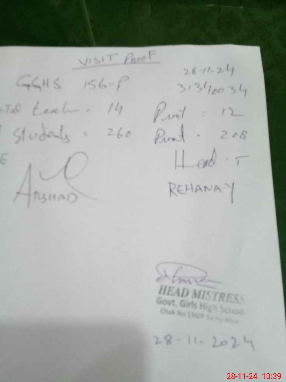 | EMIS Code: 31340034 | Name of School: GGHS CHAK NO. 156/P | |||