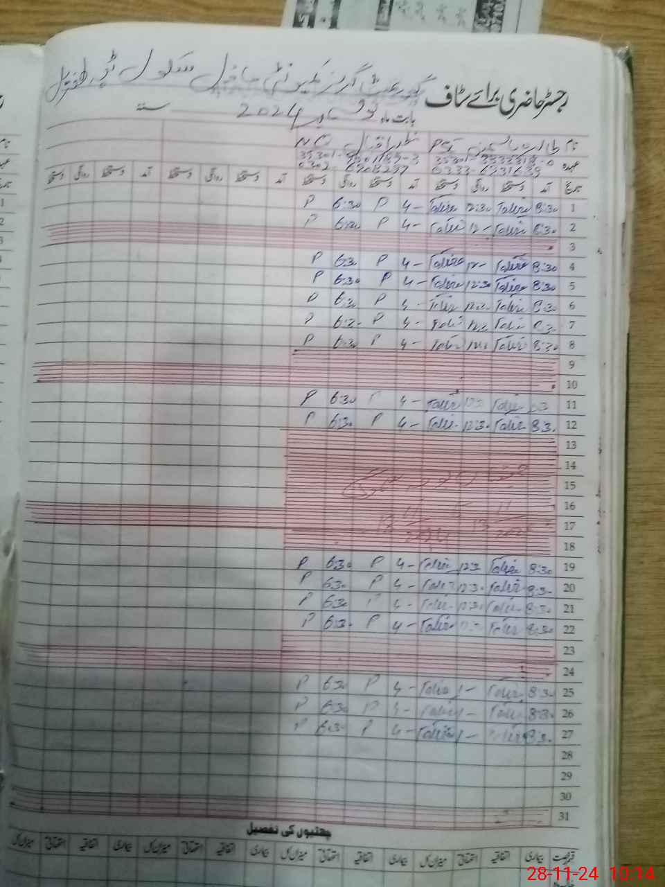 | CNIC | Full Name | Designation | R/C | Absence During Last Calender Month |