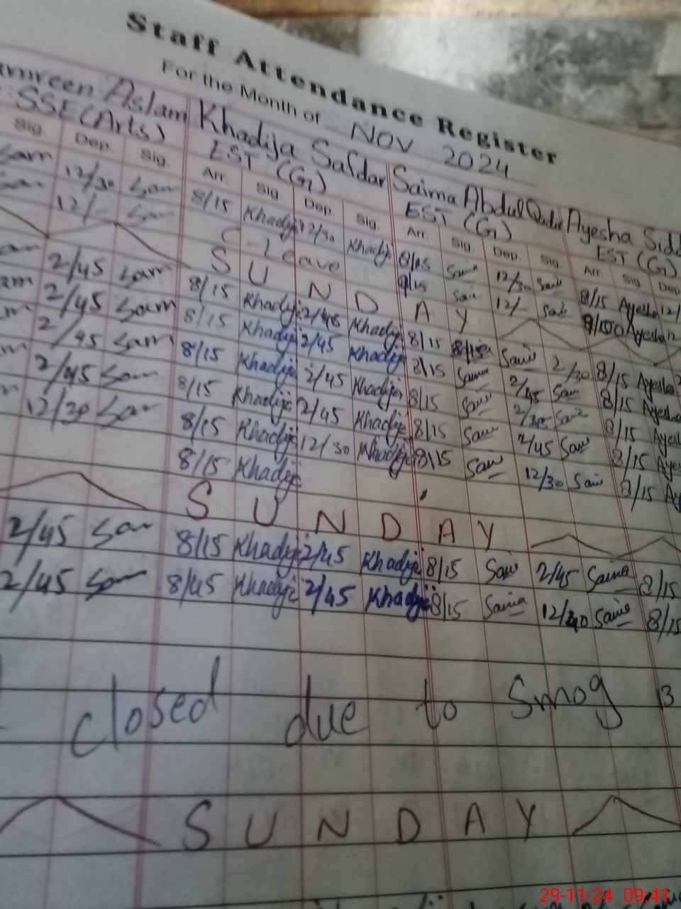 | Monitoring Date: 29-11-2024 | Start Time: 29-11-2024 09:24 AM | End Time: 29-11-2024 10:03 AM | Name of MEA: Ar**** Na**** | |