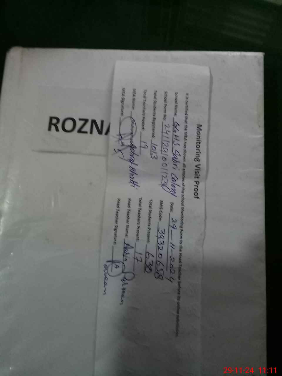 | Attendance Register | Head Teacher | MEA with School | Visit Proof |