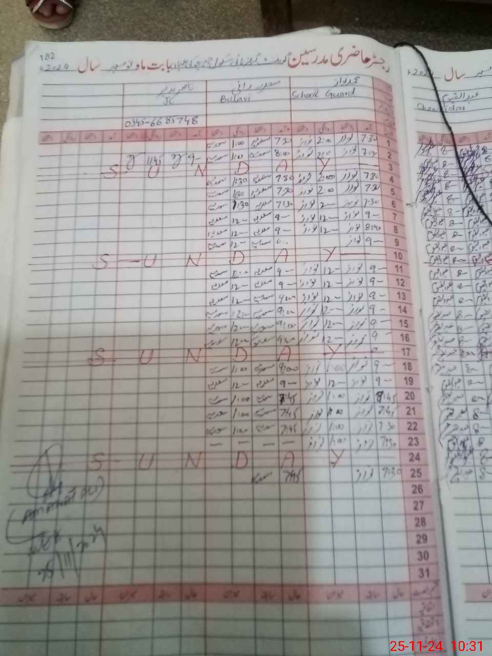 | CNIC | Full Name | Designation | R/C | Absence During Last Calender Month |