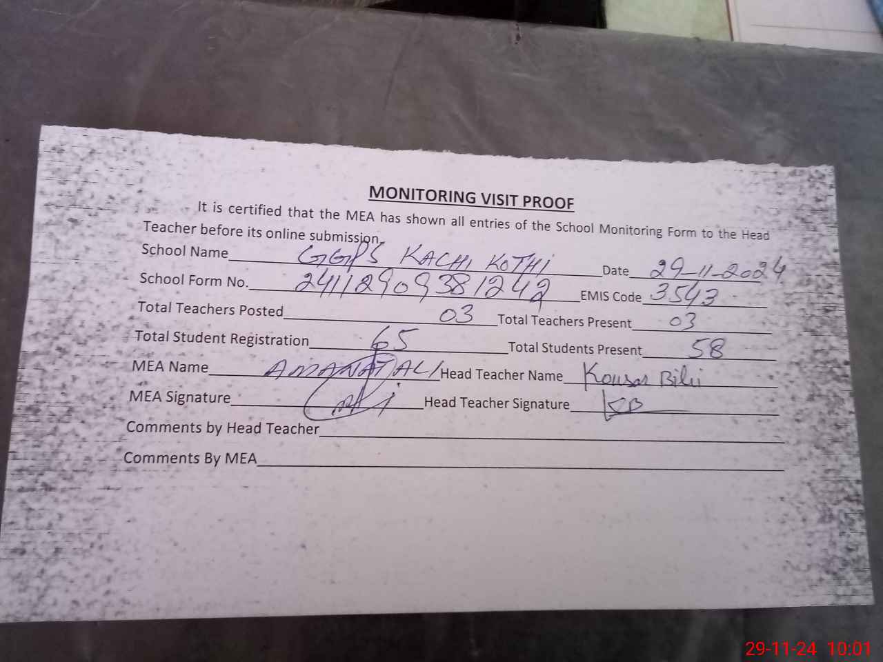 | EMIS Code: 35430950 | Name of School: GGPS KACHI KOTHI | |||