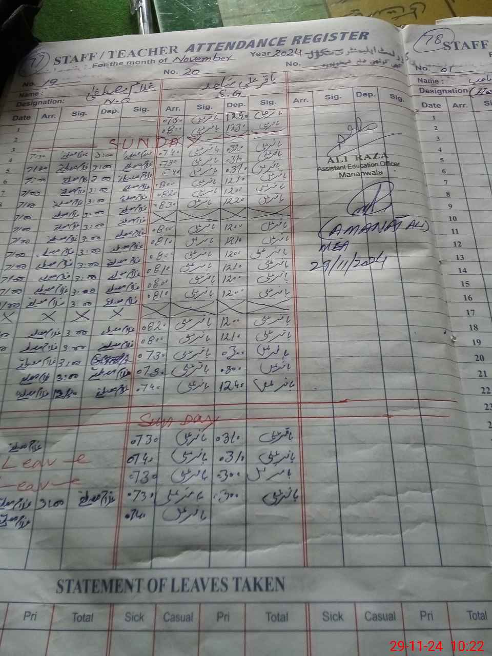 | CNIC | Full Name | Designation | R/C | Absence During Last Calender Month |