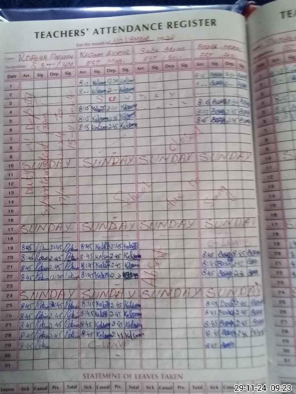 | 81**** | Sa**** Id**** | 1 | 0 | 0 | 29 | 0 | 0 | 0 | 0 | 0 | 0 | Absent (Un-Authorized) | |