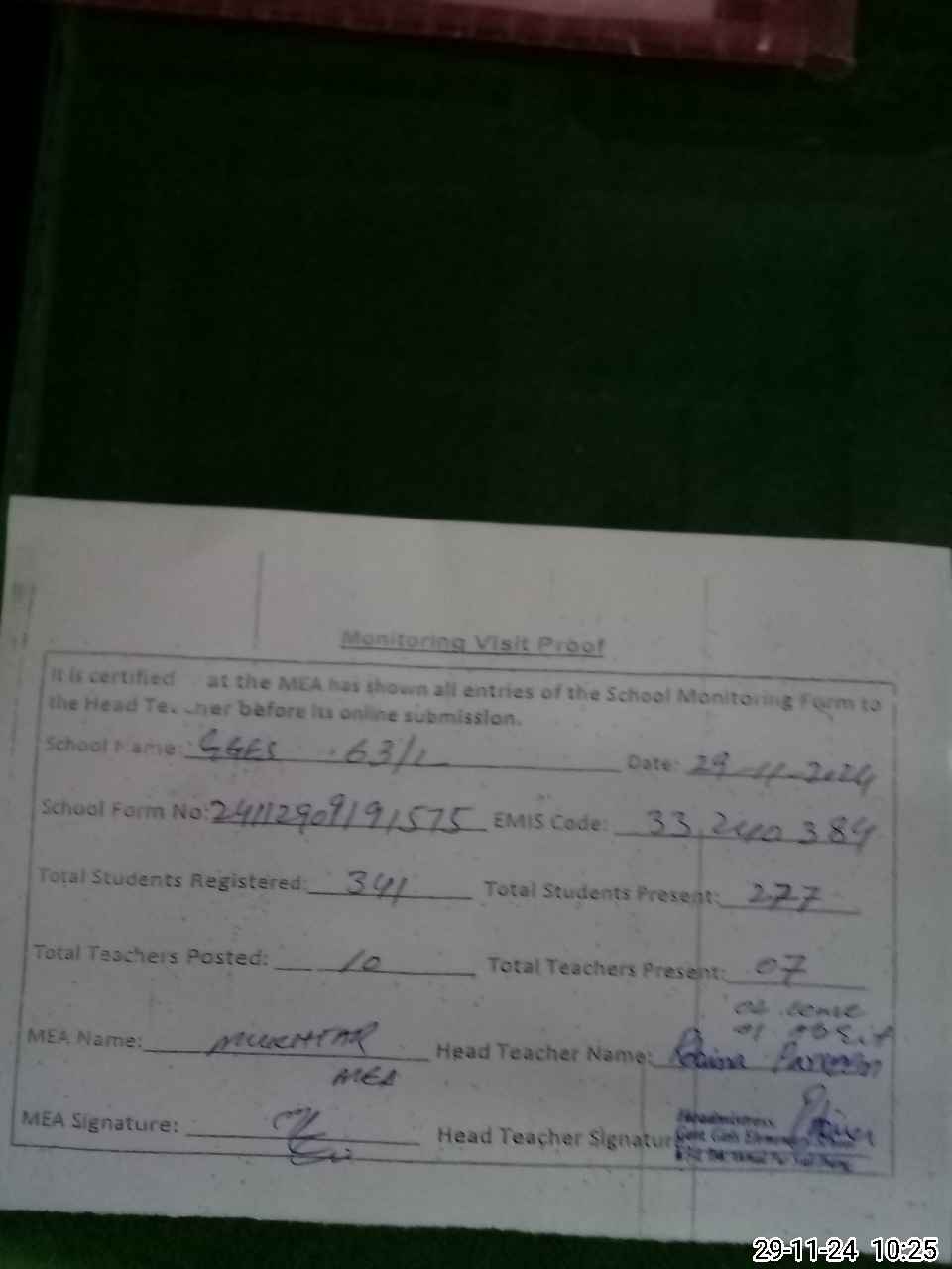 | EMIS Code: 33240384 | Name of School: GGES CHAK NO 6/3L SHUMALI | |||