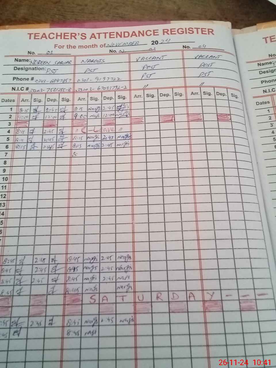| Name: NO**** SA**** Designation: (School Headmaster's/Headmistress's) PST Phone/Cell Number: 03**** |