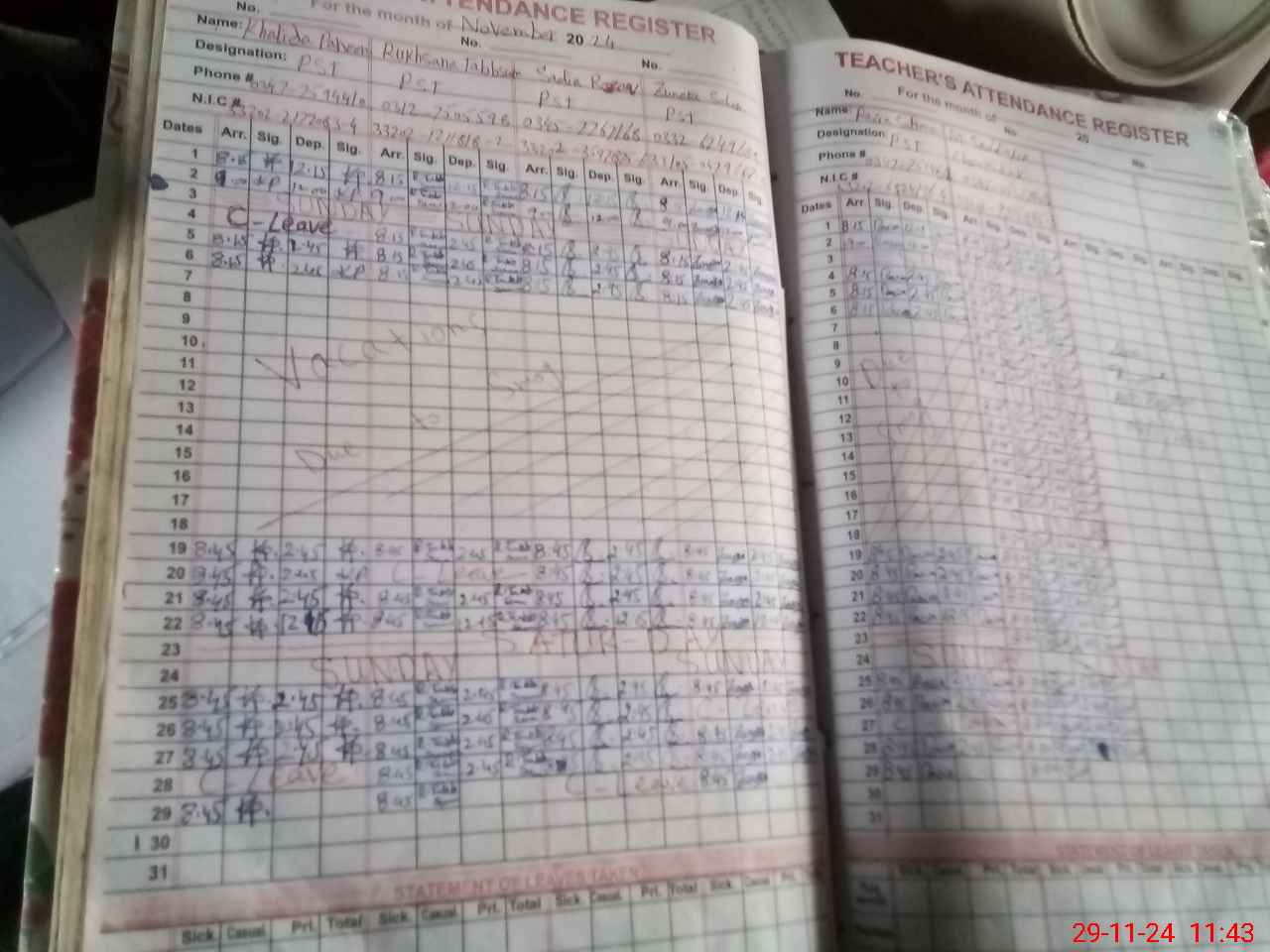 | CNIC | Full Name | Designation | R/C | Absence During Last Calender Month |