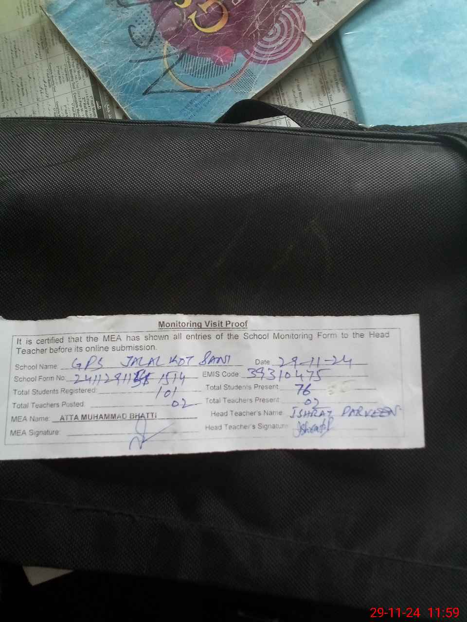 | EMIS Code: 39310475 | Name of School: GPS JALAL KOT SANI | |||