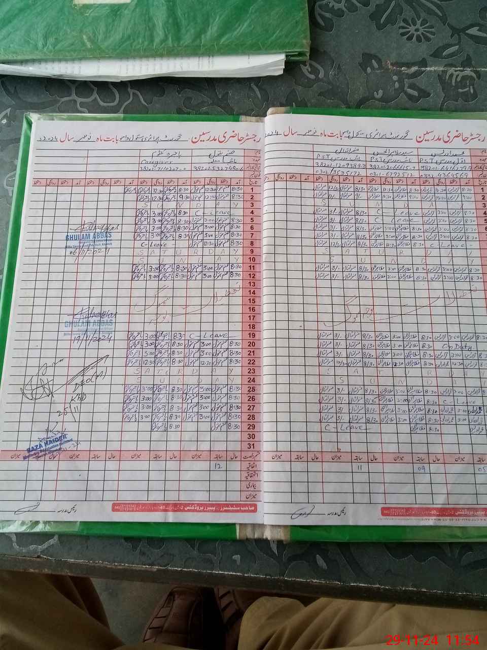 | CNIC | Full Name | Designation | R/C | Absence During Last Calender Month |