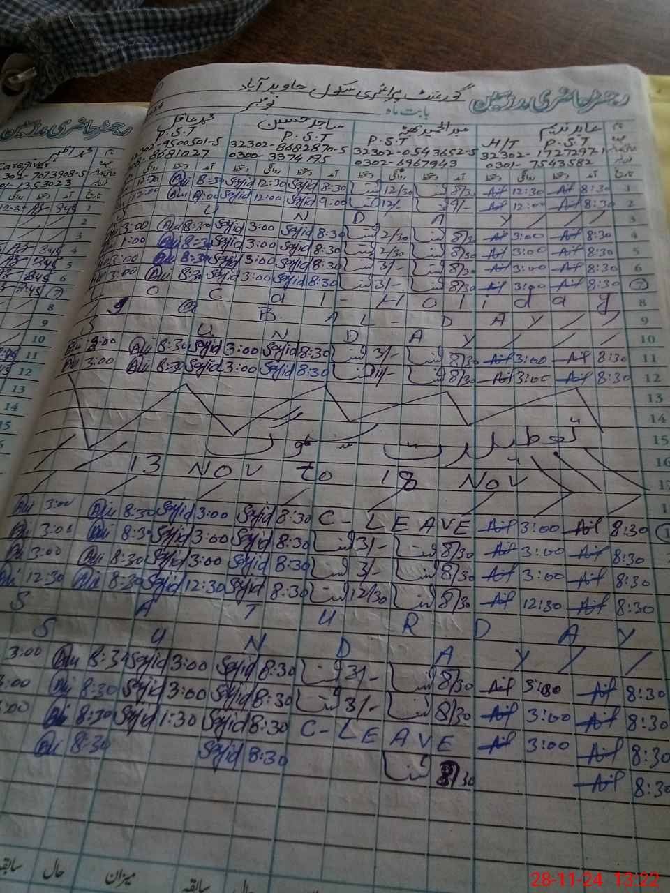 | CNIC | Full Name | Designation | R/C | Absence During Last Calender Month |