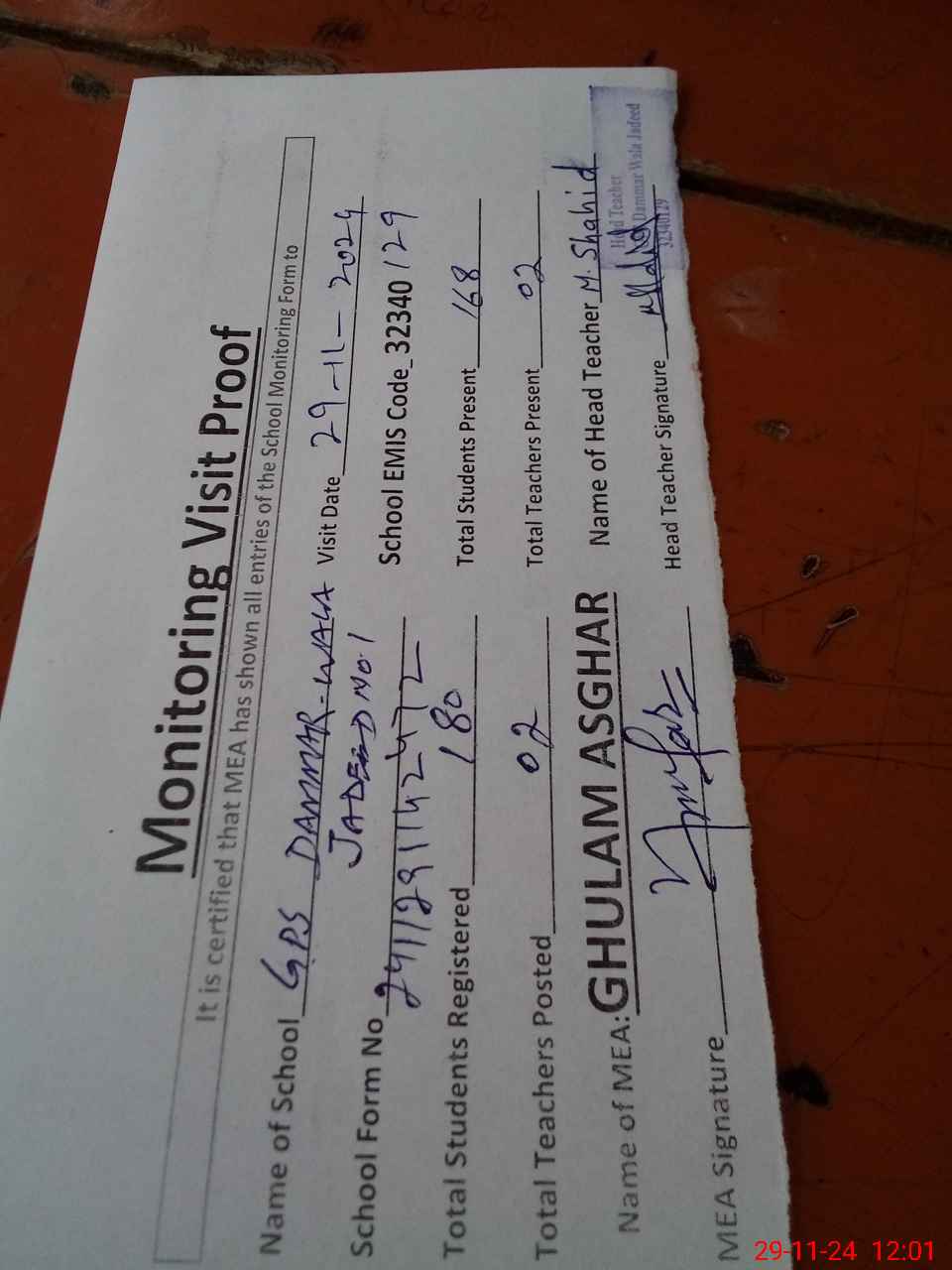 | EMIS Code: 32340129 | Name of School: GPS DAMMAR WALA JADEED | |||