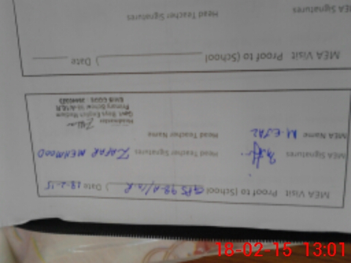 | Certified that this School was Inspected by the Undersigned MEA/DMO Today and the Information Stated Above is as Per Record. | |||||