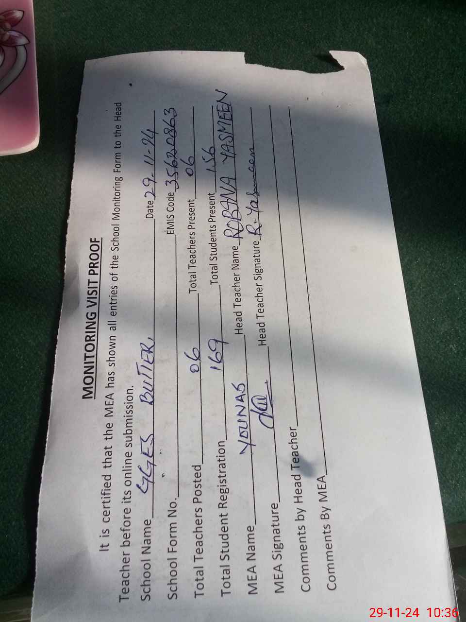 | EMIS Code: 35620863 | Name of School: GGES BUTTER CHAK 23 | |||