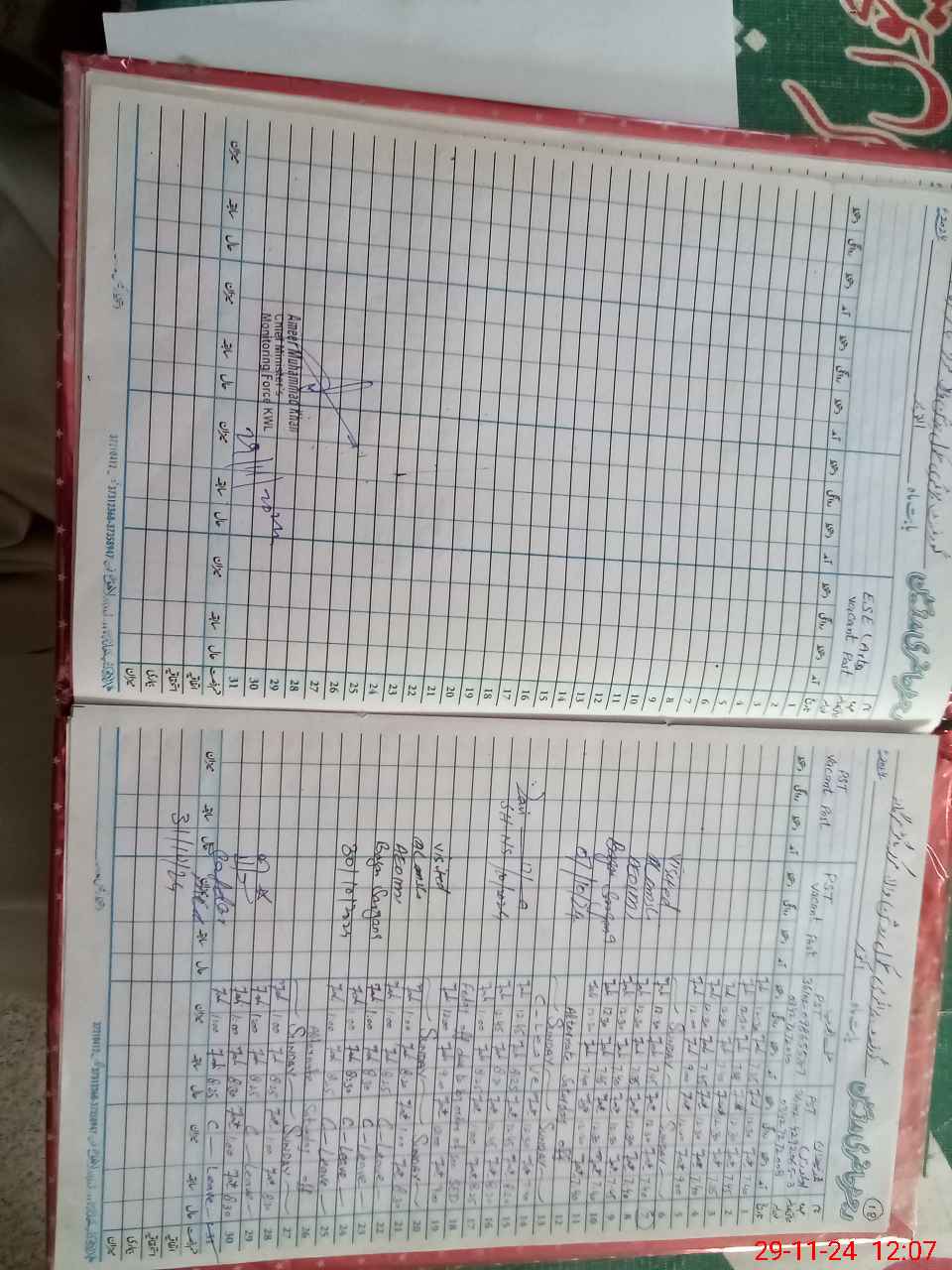| CNIC | Full Name | Designation | R/C | Absence During Last Calender Month |