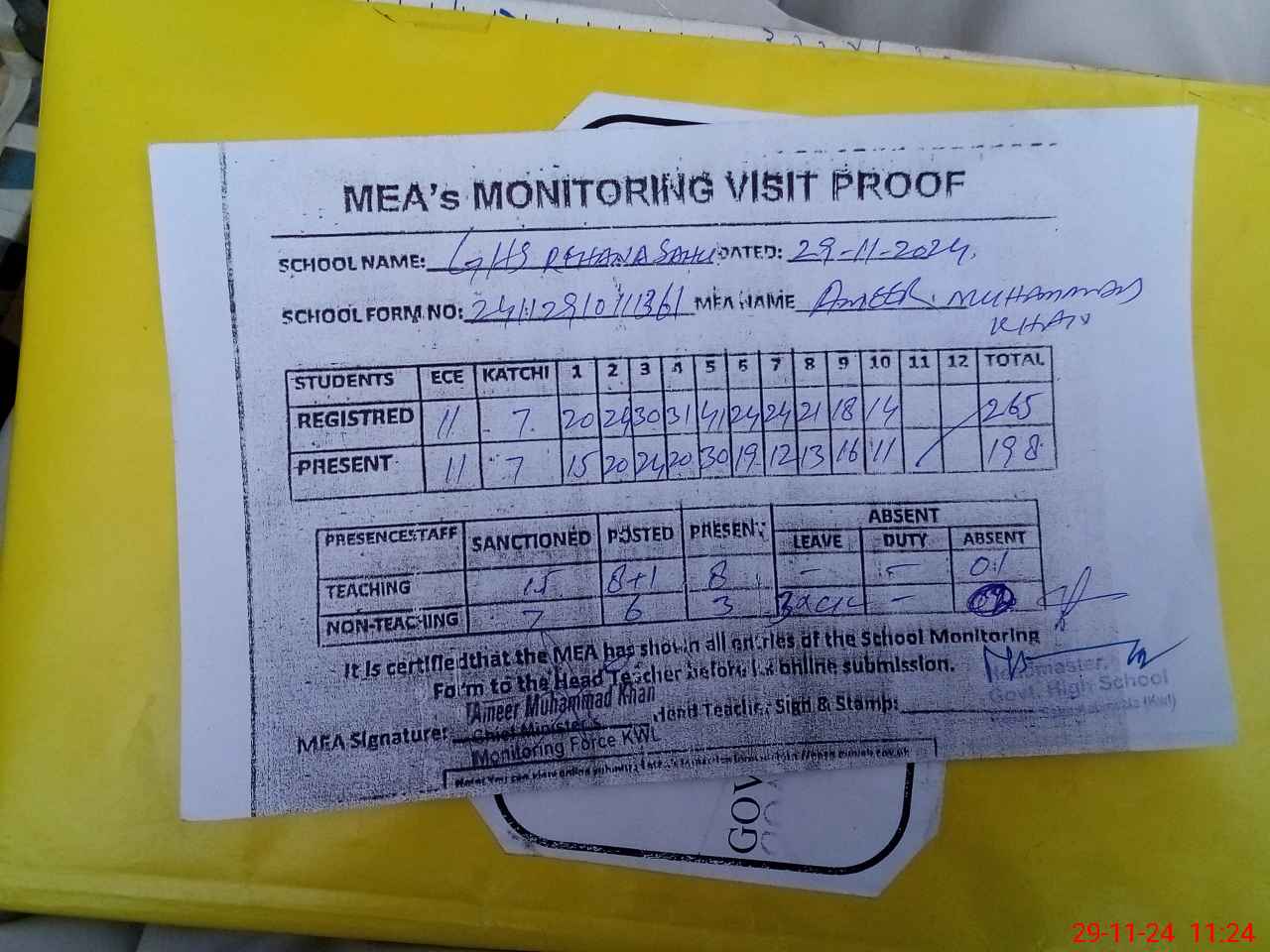 | EMIS Code: 36410005 | Name of School: GHS REHANA SAHU, KABIRWALA | |||