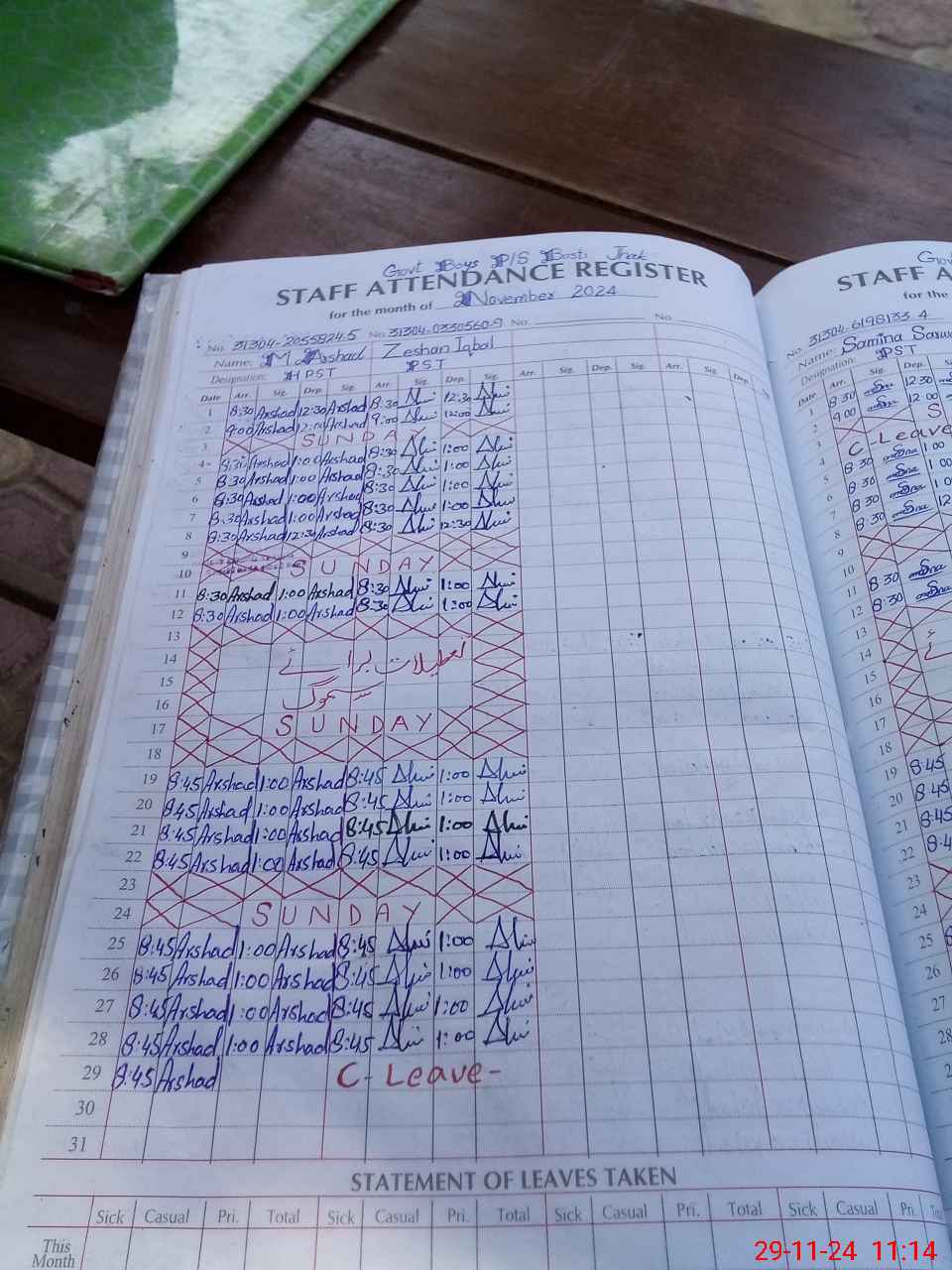 | 31**** | Ze**** Iq**** | PST | Regular | 0 | 0 | 0 | 0 | 0 | 0 | 0 | 0 | 0 | Absent (Un-Authorized) |