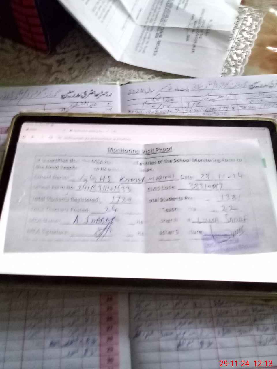 | Attendance Register | Head Teacher | MEA with School | Visit Proof |