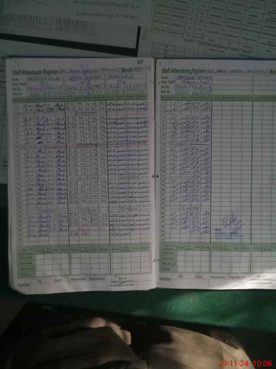 | CNIC | Full Name | Designation | R/C | Absence During Last Calender Month |