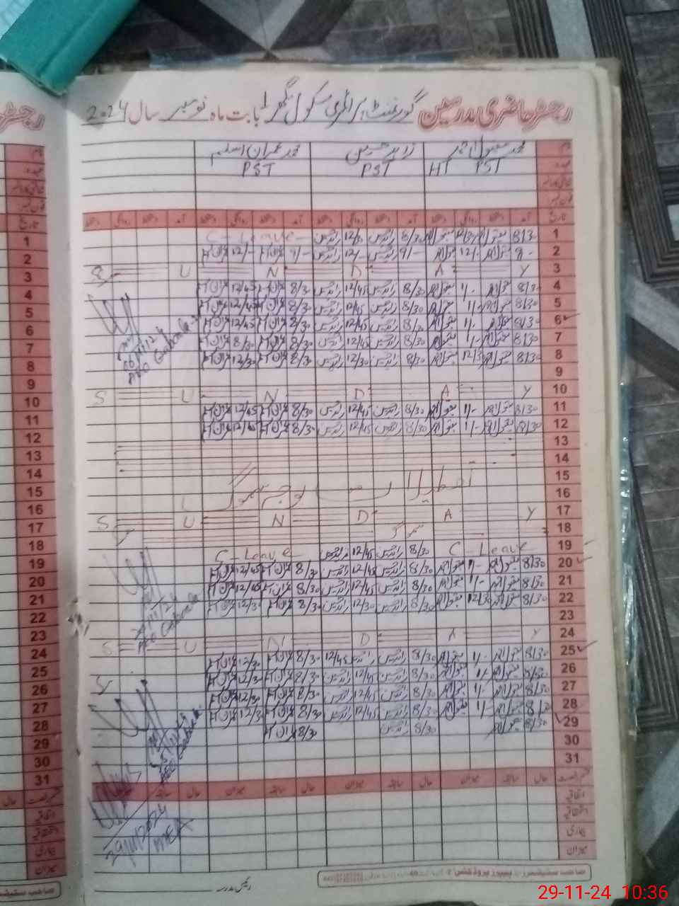 | CNIC | Full Name | Designation | R/C | Absence During Last Calender Month |