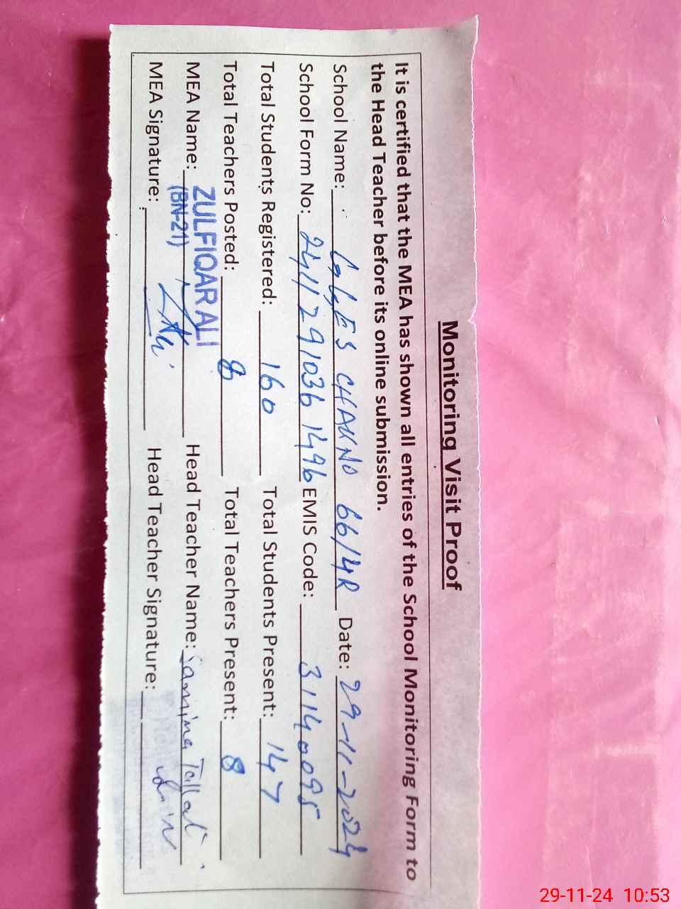 | EMIS Code: 31140095 | Name of School: GGES CHAK NO 66/4-R | |||