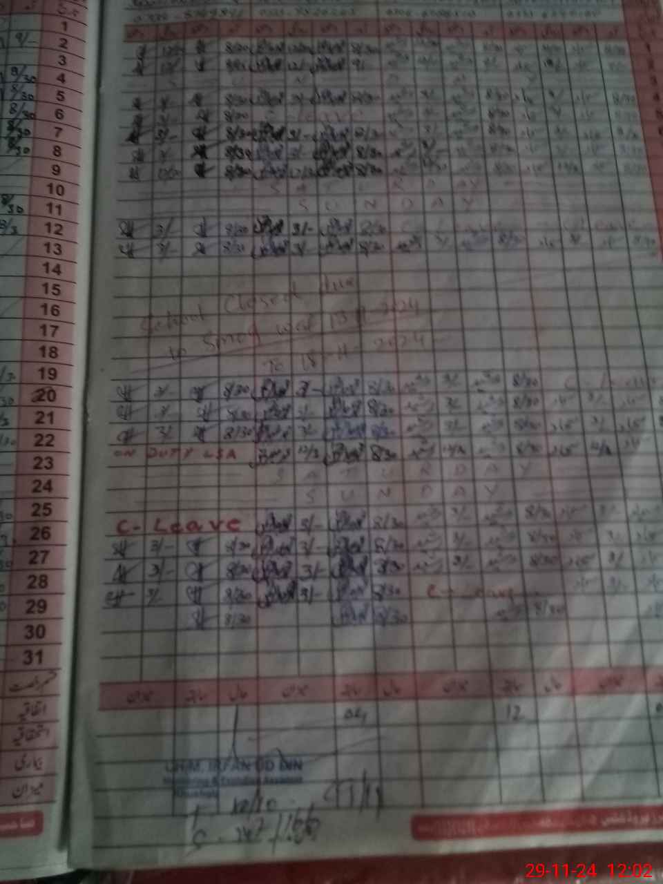 | CNIC | Full Name | Designation | R/C | Absence During Last Calender Month |