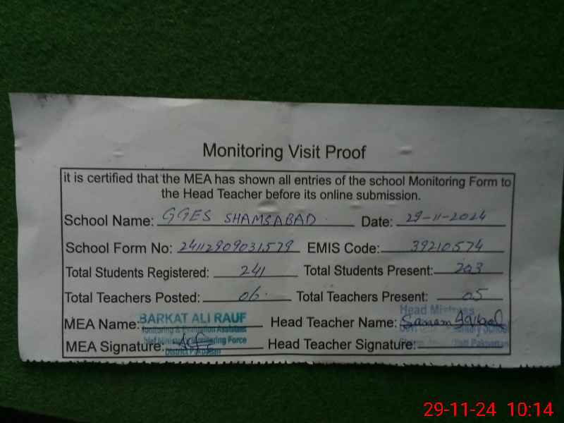 | EMIS Code: 39210574 | Name of School: GGES SHAMS ABAD | |||