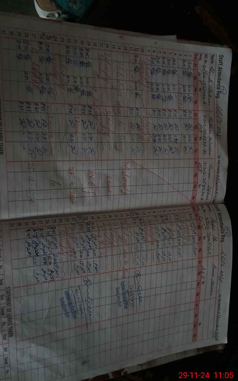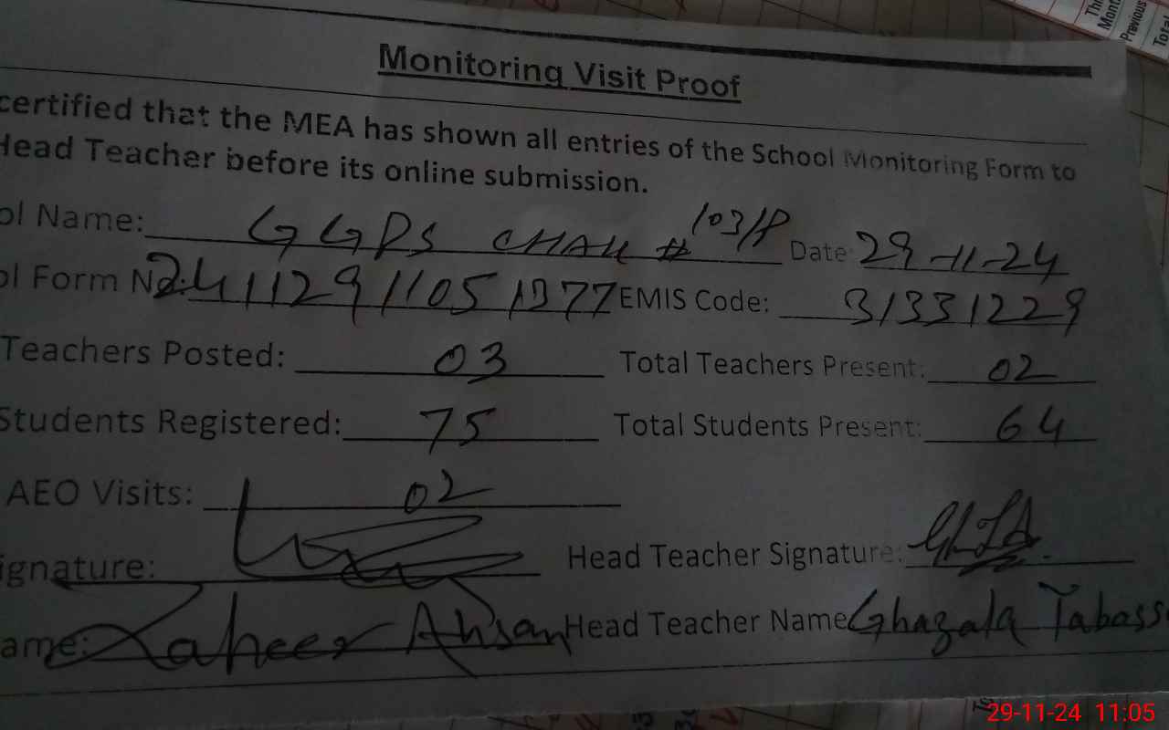 | Monitoring Date: 29-11-2024 | Start Time: 29-11-2024 10:20 AM | End Time: 29-11-2024 11:11 AM | Name of MEA: Za**** Ah**** | |
