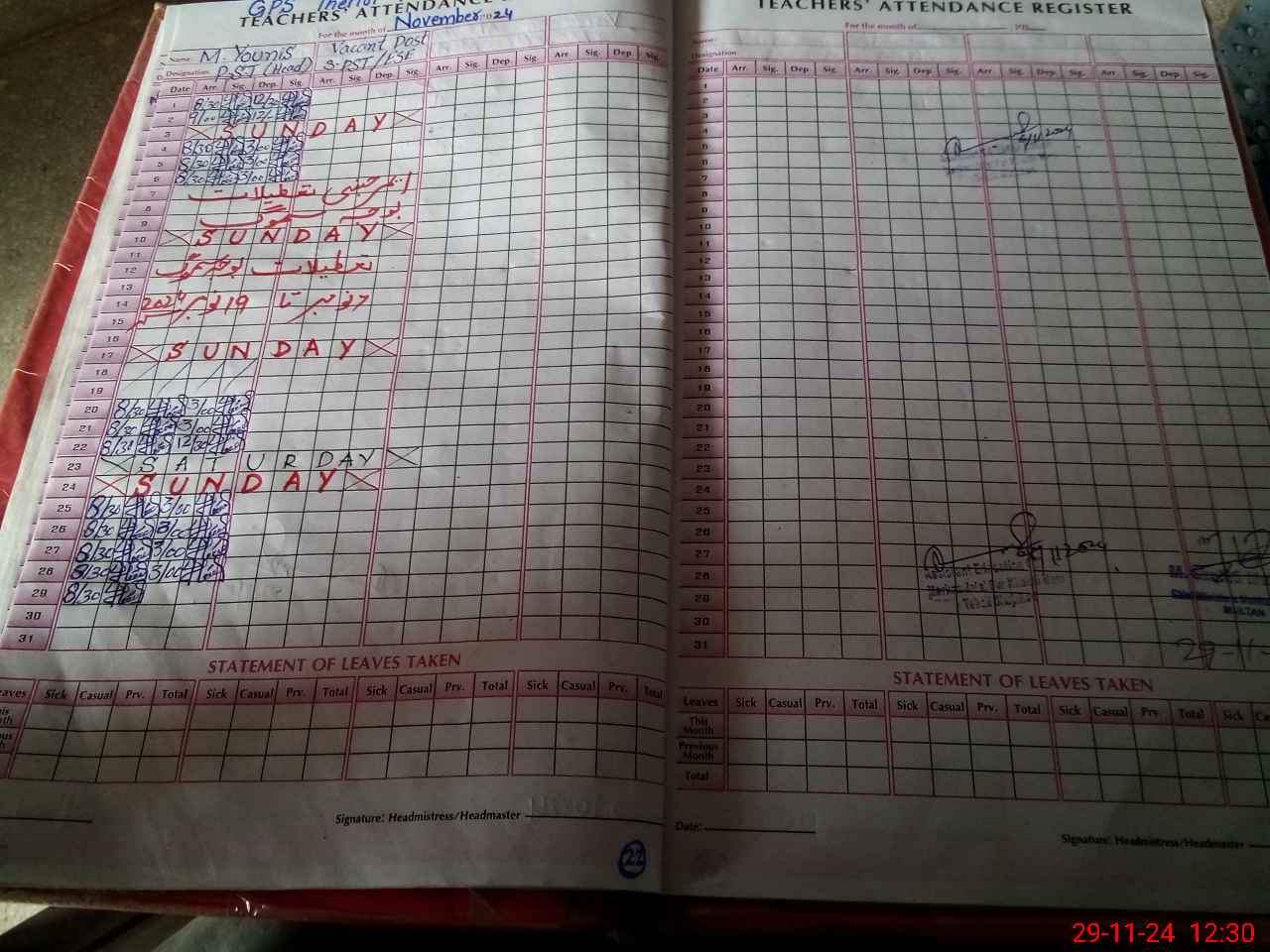 | Name: Mu**** Yo**** Designation: (School Headmaster's/Headmistress's) PST Phone/Cell Number: 03**** |