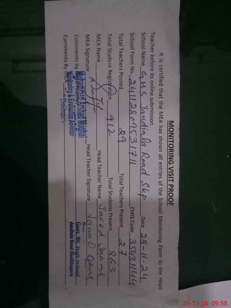 | EMIS Code: 35431144 | Name of School: GHS MC JANDIALA ROAD SHEHR | |||