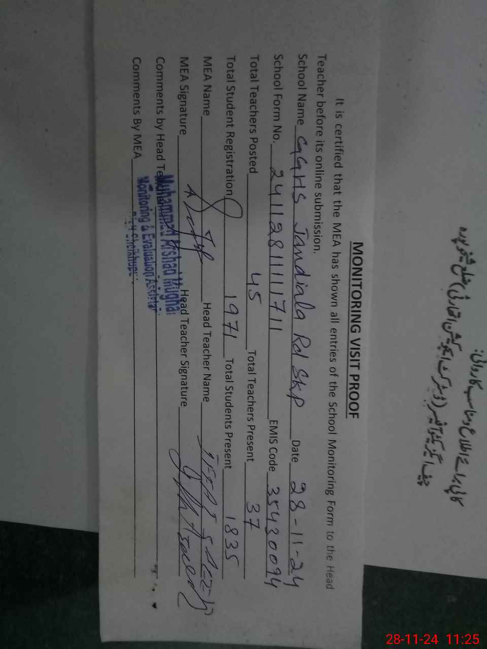 | EMIS Code: 35430094 | Name of School: GGHS MC JANDIALA ROAD SKP | |||