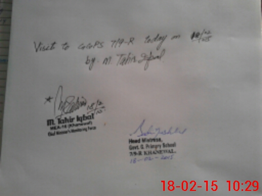 | District: KHANEWAL | Tehsil: KHANEWAL | Markaz: MAKHDOOM PUR-II - FEMALE | Level: Primary | |