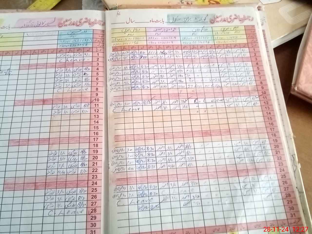 | CNIC | Full Name | Designation | R/C | Absence During Last Calender Month |