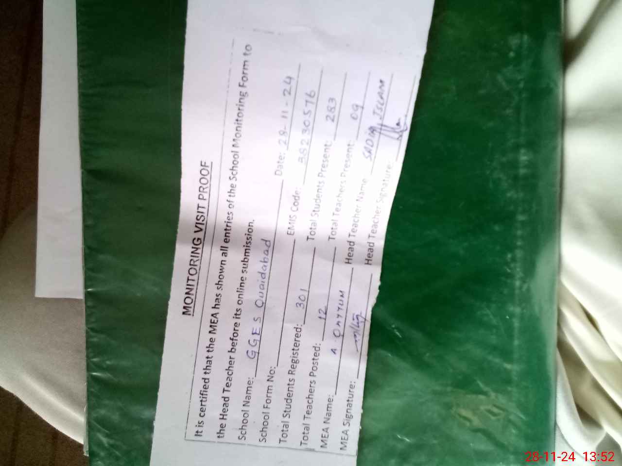 | EMIS Code: 38230576 | Name of School: GGES NO. 1 QUAIDABAD | |||