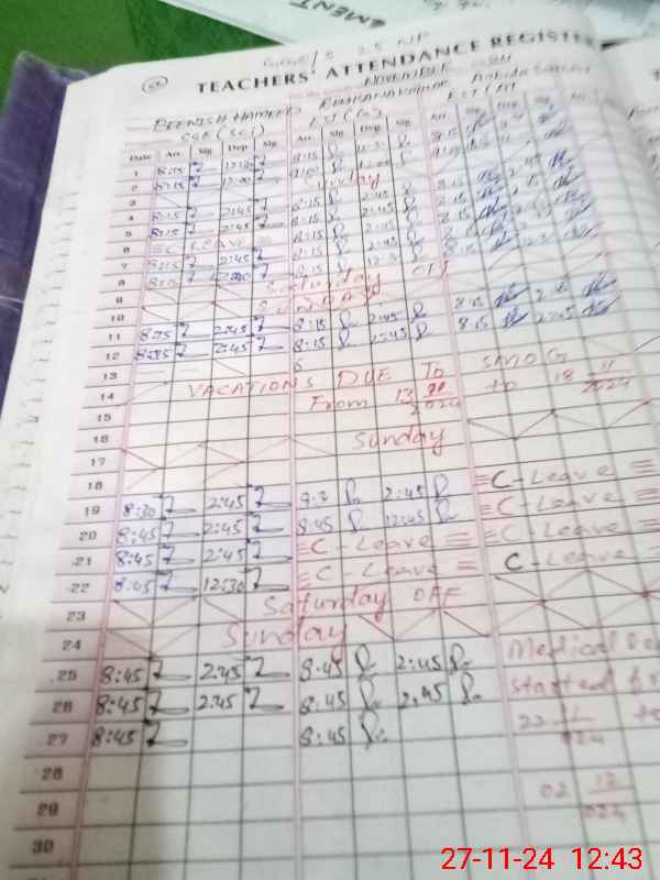| CNIC | Full Name | Designation | R/C | Absence During Last Calender Month |