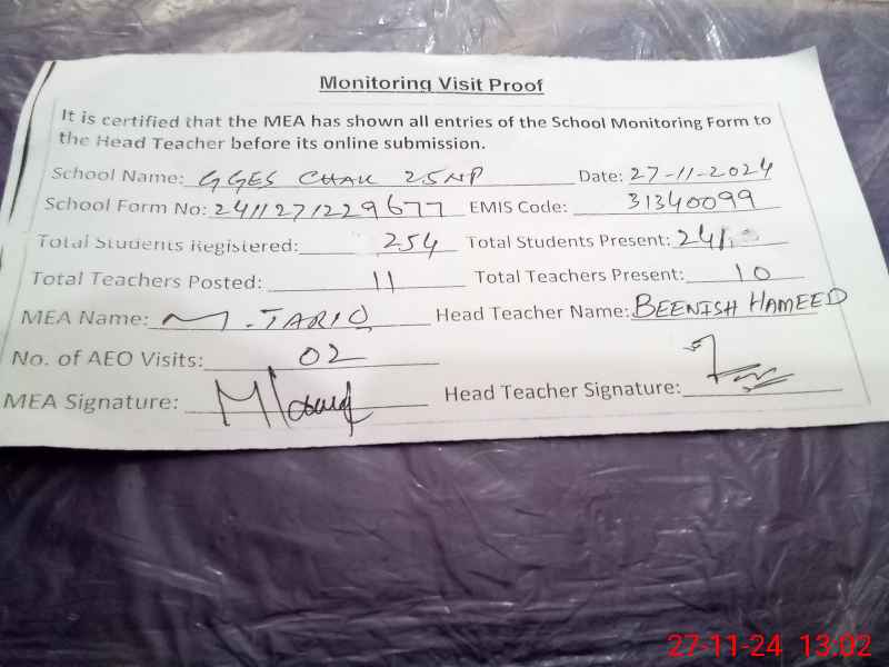 | EMIS Code: 31340099 | Name of School: GGES CHAK NO.25/NP | |||