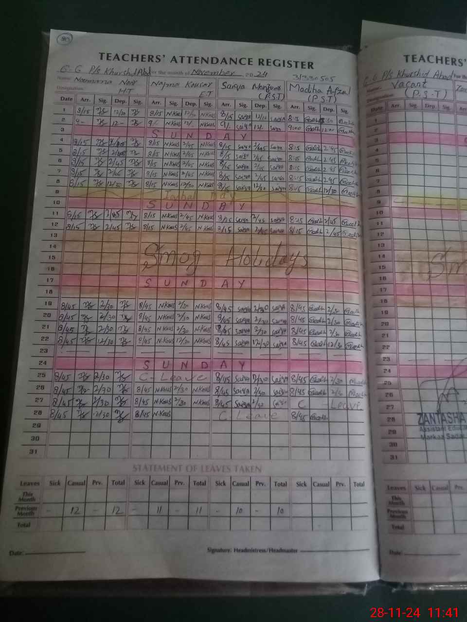 | Leave | Duty | Absent | Maternity | Medical | Ex- Pak |