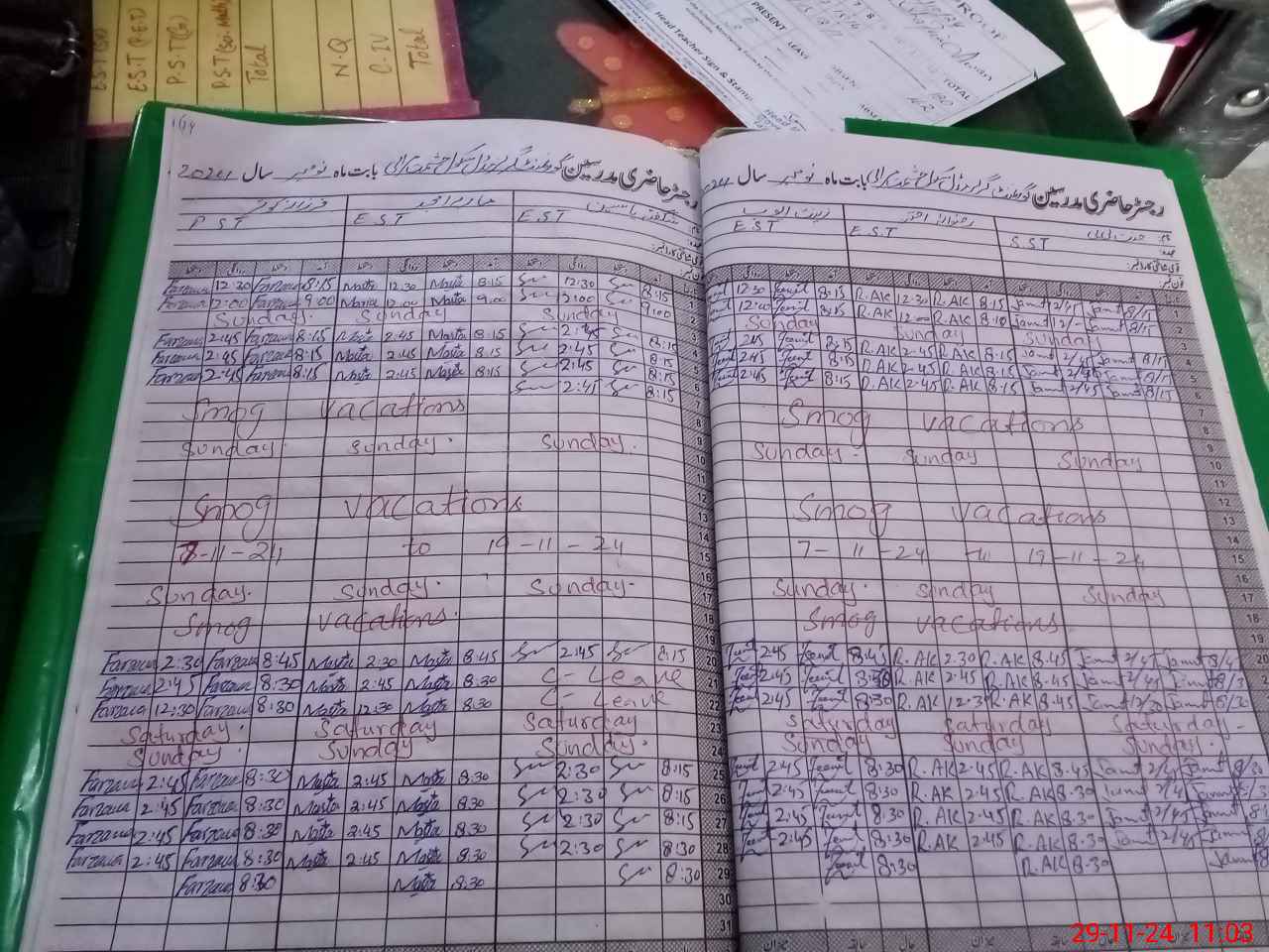 | Monitoring Date: 29-11-2024 | Start Time: 29-11-2024 10:16 AM | End Time: 29-11-2024 11:10 AM | Name of MEA: Sa**** Ah**** | |